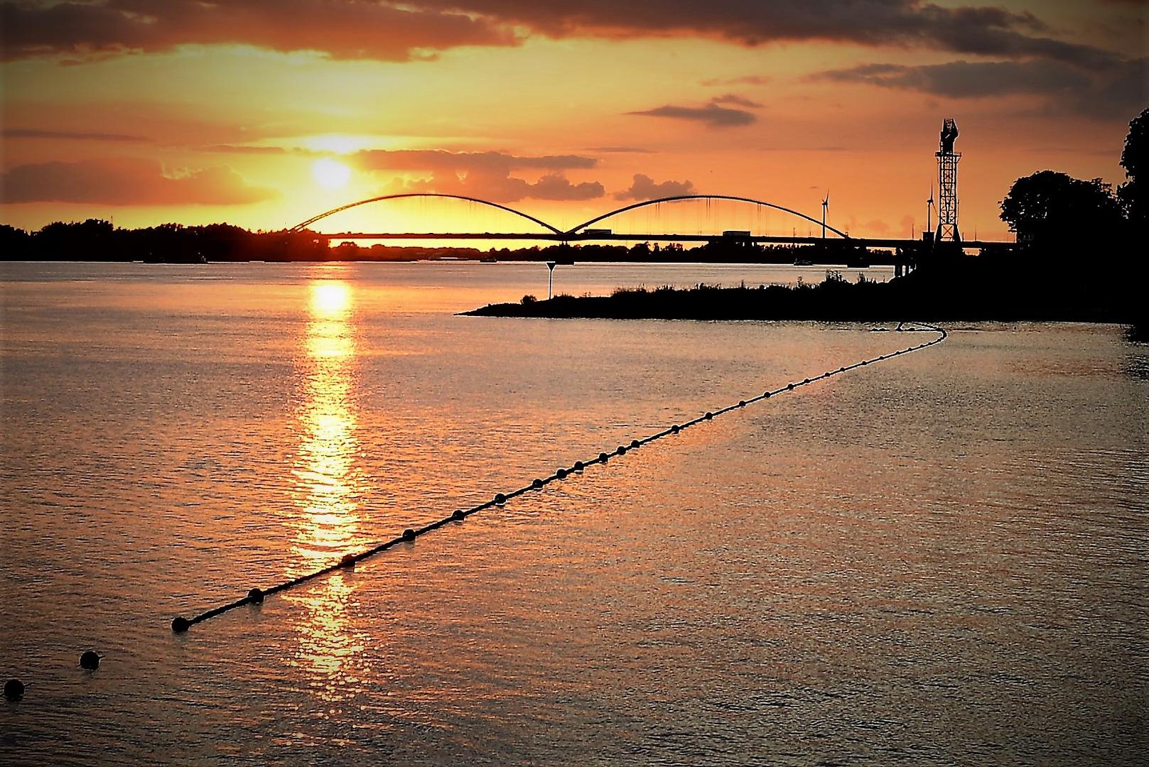 De zon gaat langzaam onder bij de Gorinchemse brug.
